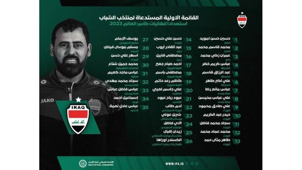 أعلن عماد محمد، مدرب منتخب شباب العراق لكرة القدم اختيار 35 لاعباً لتشكيلة المنتخب الذي يستعد للمشاركة في مونديال الشباب المقبل من بينهم نجله محمد عماد محمد.