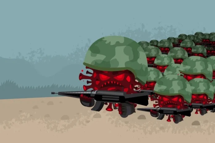 وقال العالم الفيزيائي إن أي دولة تفكر في استخدام فيروس قاتل كسلاح حرب ستحتاج أولا إلى تحصين شعبها، ربما تحت ستار التطعيم ضد الإنفلونزا. وأضاف أن المناعة الطويلة المدى على مستوى السكان ستفرض تحسين الفيروس بشكل كاف قبل إطلاقه، لتقليل احتمالية حدوث طفرة أخرى. وهو ما حدث مع فيروس كورونا الجديد حيث لم تحدث طفرات خطيرة لمدة 9 أشهر.
