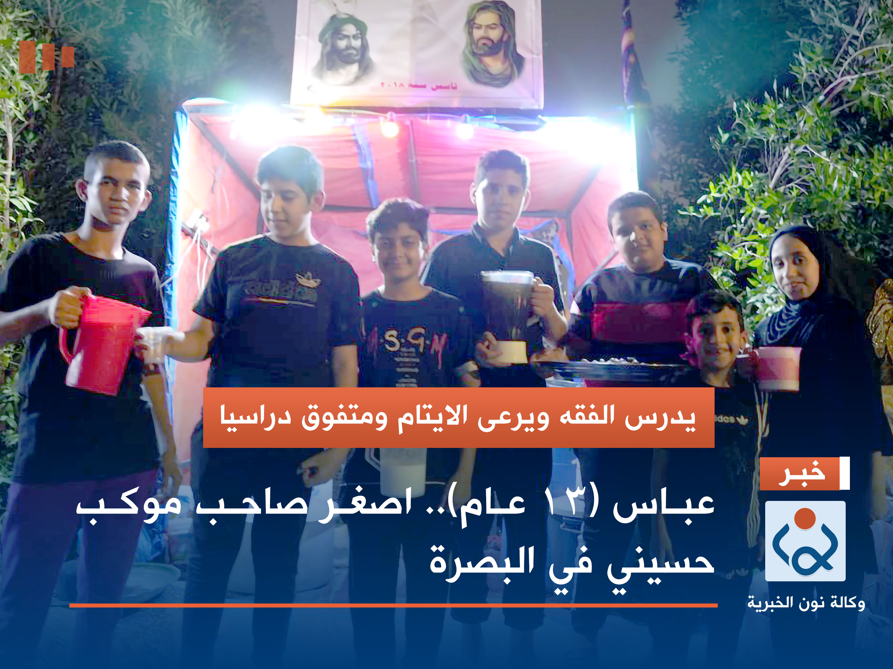بحثت كثيرا عن مكان في الشارع الرئيس الذي تسير به المشاية نحو كربلاء المقدسة لأخدم فيه الحسين (عليه السلام) لان خدمته واجب علينا، هكذا يصف الصبي عباس حيدر جواد حالته لوكالة نون الخبرية، ويضيف "عجزت عن ذلك وكنت احضر الدروس الفقهية في حسينية المجتبى منذ كان عمري ثماني سنوات، وأثرت في ذهني الدروس الفقهية ومؤسسة الايتام التي اعمل بها للتعلق بحب الحسين (عليه السلام)، والرغبة في خدمته لان افضل وسيلة للوصول الى الله هو الحسين وانا الآن في الصف الثاني المتوسط وحصلت على اعفاء ببعض الدروس، وبالرغم من اني بدأت الخدمة الحسينية منذ سنوات عبر وضع صندوق خشبي لجمع التبرعات امام باب دارنا في منطقة حي الحسين، اضع فيه اول شيء مصروفي اليومي، وانشأت اول موكب حسيني عام (2018) لكن في منطقة لا يمر بها الزوار، وكنت اوزع السندويشات والعصائر والمياه وكان موكبنا بسيط ومشيد من الخشب وجمعت المال وطورته وجعلته من الحديد والجادر، وكان حلم حياتي ان اخدم في طريق المشاية، وهذا العام بحثت لأيام عن مكان للخدمة من بداية المسير من ساحة سعد الى جسر الكزيزة، فتعبت من السير وضاقت نفسي وجلست في هذا المكان ابكي بحرقة لفقدان الامل، فجاء صاحب الموكب الذي جلست امامه وعطف علي وكفكف دموعي واعطاني مساحة لا تتعدي مترين مربعين، ونصبت علها موكب قطيع الكفين وتحقق حلمي وقدمت الخدمة للمشاية".