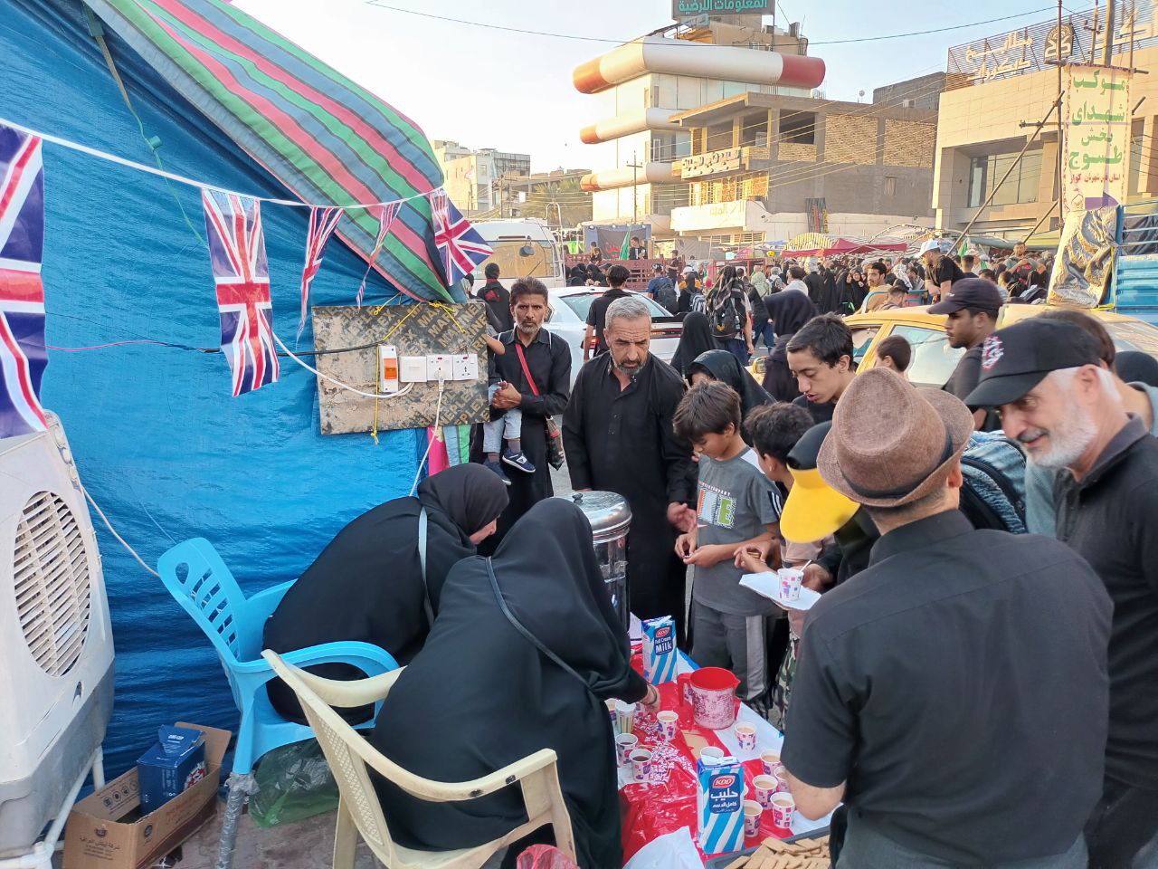 زيارة الاربعين :بريطانية وابنتها تخدمان المشاية على طريق الزائرين