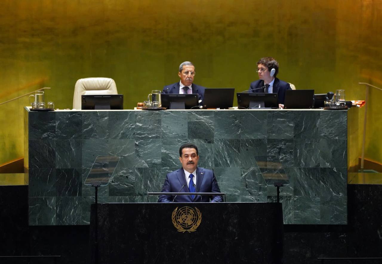 وقال السوداني خلال مشاركته في الدورة الـ 78 لأعمال الجمعية العامة للأمم المتحدة، إن "العراق كان من بين الدول الخمسين التي أسست هذه المنظمة العتيدة قبل ثمانيةٍ وسبعين عاماً وكان ومازال حتى اليوم يؤمن بالمبادئ العامة التي أسست عليها ويسهم في جميع برامجها إيماناً منه بأنّه لا سبيل أمامنا سوى التآخي والتعاضد الإنساني من أجل الوجود الآمن المستمر للعالم أجمع".