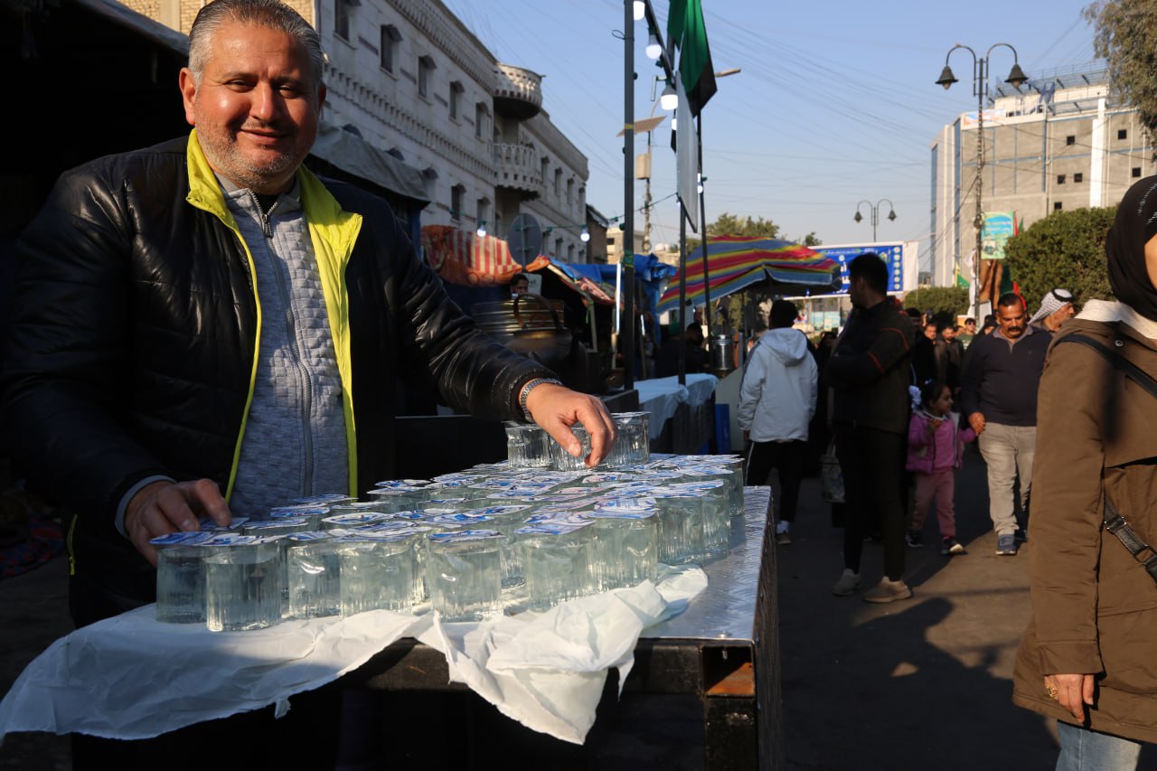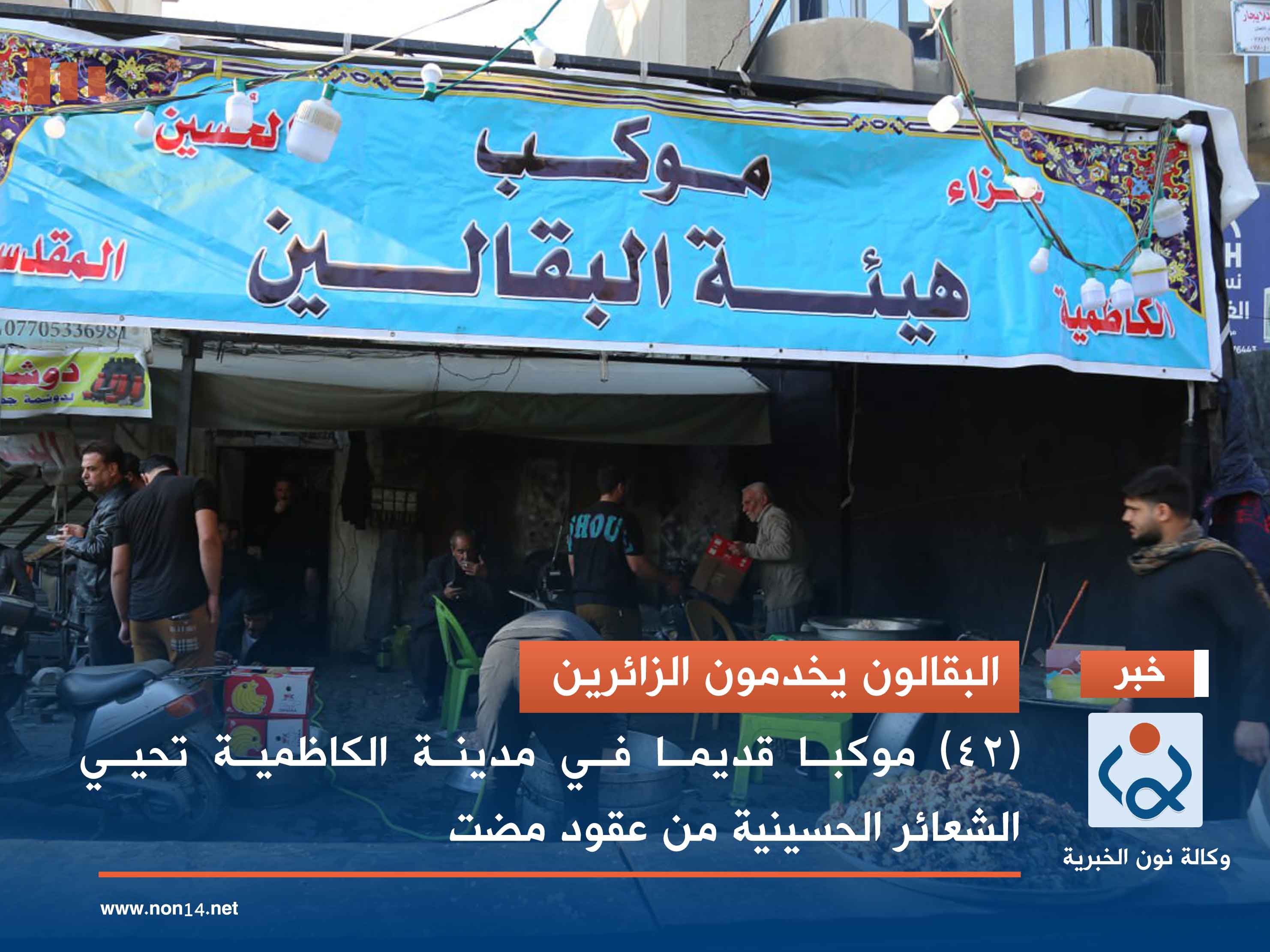 وعن الخدمة التي يقدمها الموكب وخدامه حاليا يقول ان" لدى موكب "البقالين" حسينية هي من اوائل الحسينيات في كربلاء المقدسة لاهالي الكاظمية اشتروها في عام (1949) بمبلغ (950) دينار حينها في منطقة العباسية الغربية في شارع النجارين، وقام النظام البعثي بتهديمها مع مجموعة من الحسينيات والمدارس الدينية، وبعد زواله قمنا باعادة بنائها، وفي احد الايام وقفت سيدة وقورة امام الحسينية وقالت هذا بيتنا، واصبنا بصدمة خشية ان يكون هناك عائق في شرائها، ثم عرفنا منها ان امها باعت البيت لاهالي الكاظمية بمبلغ (950) دينار، وعادت في اليوم الثاني وكانت تعيش في مملكة السويد وتملكنا الخوف لكنها تبرعت بمبلغ (8000) الف دولار اميركي لبناء الحسينية، ما يعادل حينها عشرة ملايين دينار عراقي، واصبحوا يحيون فيها الشعائر ويقدمون الخدمة في شهري محرم وصفر، اما في الكاظمية فتخصص (15) خادم حسيني بتقديم وجبة واحدة من المشويات يوميا ووجبات كثيرة في يوم الاستشهاد الذي ترحل فيه كل المواكب القادمة من بغداد والمحافظات لسد حاجة الزائرين".