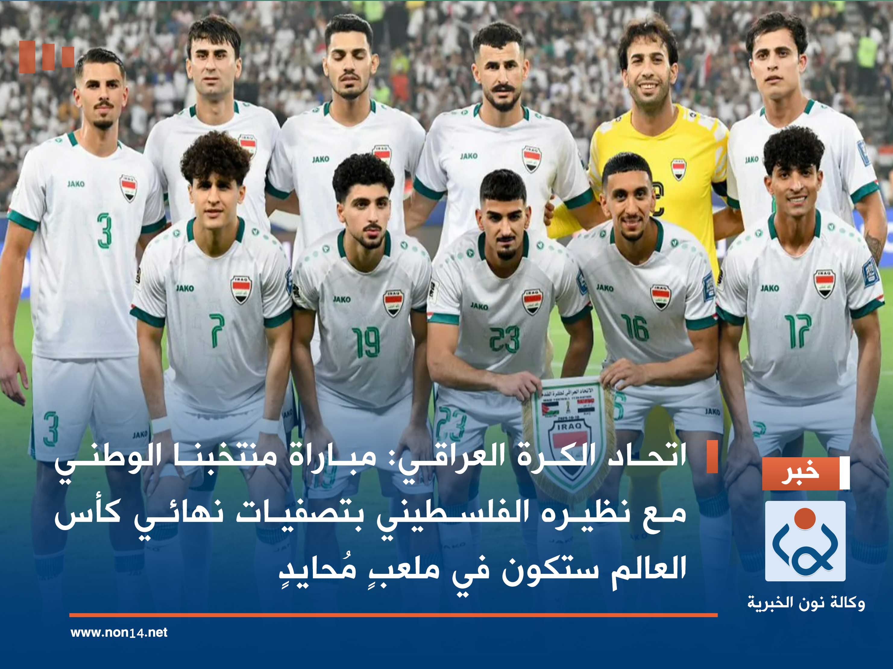 أكد الاتحاد العراقي لكرة القدم، اليوم الاثنين، بأن مباراة منتخبنا الوطني مع نظيره الفلسطيني بتصفيات نهائي كأس العالم ستكون في ملعبٍ مُحايدٍ.