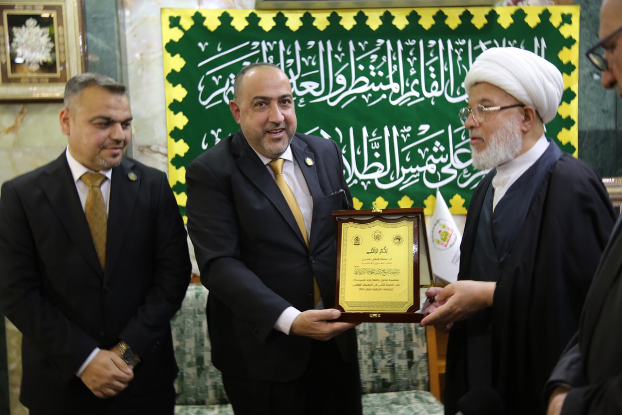وقال رئيس الجامعة الدكتور "ابراهيم سعيد الحياوي" في تصريح لوكالة نون الخبرية ان" حضورنا اليوم الى مكتب المتولي الشرعي للعتبة الحسينية الشيخ عبد المهدي الكربلائي لغرض تكريم الجامعة ومنتسبيها لمناسبة حصولنا على المركز الثاني في التصنيف العراقي للجامعات العراقية، وهو تصنيف سنوي تصدره وزارة التعليم العالي والبحث العلمي ضمن معايير محددة حصلت فيه جامعة وارث الانبياء على المركز الثاني، وتركزت توجيهات المتولي الشرعي للعتبة الحسينية على الاهتمام بالجانبين التعليمي والاخلاقي للطلبة، كونها جامعة تابعة الى العتبة الحسينية المقدسة لذلك نولي اهتماما كبيرا بكلتا الجانبين، لاننا لا ننظر الى الطالب المتخرج انه خريج فقط، بل انه قائد، ومسؤول، ومتميز، وباحث، لذلك نراعي الجوانب القيمية والاخلاقية في العملية الاكاديمية ونحن سائرون بتوجيهات المتولي الشرعي للعتبة الحسينية، ويمثل هذا التكريم للجامعة مسؤولية والتزام لبذل المزيد من الجهود وتقديم العطاء والتميز اكثر".
