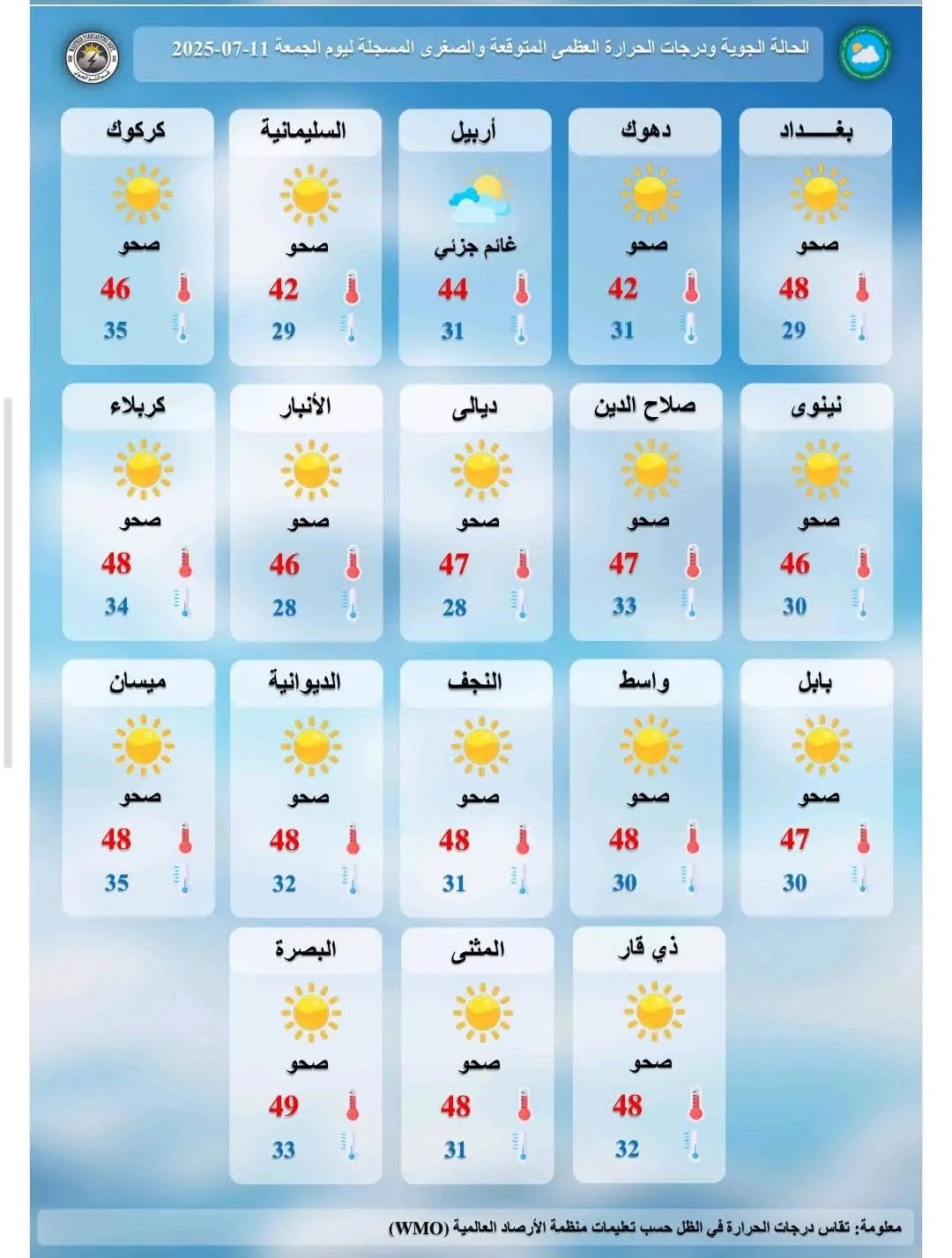 11 محافظة عراقية على أعتاب الخمسين والبصرة تسجل نصف درجة الغليان الجمعة 11 تموز 2025 سياسية 1,015 مشاهدة 11 محافظة عراقية على أعتاب الخمسين والبصرة تسجل نصف درجة الغليان أعلنت هيئة الأنواء الجوية، اليوم الجمعة، طقس العراق خلال الأيام المقبلة، فيما أشارت إلى ارتفاع في درجات الحرارة في عموم المحافظات. كلمات مفتاحية المحافظات درجات الحرارة الانواء الجوية يوم الجمعة المحافظ الحرارة الأنواء الجوية الغليان التعليقات (0) لا توجد تعليقات بعد. كن أول من يعلق! اسمك البريد الإلكتروني تعليق إرسال التعليق تعليقاتكم والموضوعات الأكثر تداولاً أكثر المواضيع قراءة عرض الكل الأكثر قراءة اليوم الأسبوع الشهر سنة 1 مقالات حذارِ من الترميز بحرف الـ ( ص) أو (ع) للمعصومين صلوات الله عليهم 1271 مشاهدة --منذ 11 ساعة 2 سياسية الوضع المالي حرج جداً.. السوداني يصارح الإطار والمالكي يرد: أحسنت ولذلك يجب تغييرك 860 مشاهدة --منذ 23 ساعة 3 علمية طعام يومي يحمي العظام ويقويها أكثر من الحليب 529 مشاهدة --منذ 13 ساعة 4 سياسية القوى السنية تتجه لترشيح شخصيتين لمنصب رئيس البرلمان: "الحسم بالتوافق أو التصويت" 391 مشاهدة --منذ 9 ساعة 5 سياسية الصحة العراقية توافق على تعيين خريجي دفعة 2023–2024 380 مشاهدة --منذ 11 ساعة 1 إقتصادية أسعار صرف الدولار مع افتتاح الأسواق في العراق صباح الاثنين 2342 مشاهدة --الأثنين 15 كانون الأول 2025 2 إقتصادية تعرف على أسعار صرف الدولار مع اغلاق البورصة مساء الأحد 2300 مشاهدة --الأحد 14 كانون الأول 2025 3 اخبار محلية كربلاء تنتقد قرارات لوزارة الداخلية وتصفها بانها عملية قتل مع "سبق الاصرار" للسياحة بالعراق والمحافظة 2279 مشاهدة --الأثنين 15 كانون الأول 2025 4 إقتصادية الدولار يواصل ارتفاعه أمام الدينار العراقي مساء السبت 2104 مشاهدة --السبت 13 كانون الأول 2025 1 سياسية مجلس بغداد يُفعّل نظام التوصيل المنزلي للنفط الأبيض 4536 مشاهدة --الخميس 20 تشرين الثاني 2025 2 إقتصادية الدولار يواصل ارتفاعه أمام الدينار العراقي 3450 مشاهدة --الأربعاء 19 تشرين الثاني 2025 3 إقتصادية الدولار يواصل ارتفاعه أمام الدينار العراقي 3298 مشاهدة --الثلاثاء 25 تشرين الثاني 2025 4 سياسية دولة القانون تكشف عن مرشح جديد لرئاسة الوزراء 2896 مشاهدة --الأثنين 24 تشرين الثاني 2025 5 إقتصادية أسعار صرف الدولار مع إغلاق السوق مساء الأربعاء في العراق 2839 مشاهدة --الأربعاء 03 كانون الأول 2025 6 اخبار محلية كربلاء توزع حصة النفط الأبيض بالبطاقة الالكترونية رقم (٢) 2810 مشاهدة --الثلاثاء 18 تشرين الثاني 2025 1 اخبار محلية خلال زيارته لمشروع صحن العقيلة.. ممثل السيد السيستاني يوعز بتخصيص مساحة (5) الاف متر على اسطح البنايات للزائرين 18736 مشاهدة --السبت 13 ايلول 2025 2 سياسية مكتب السيد السيستاني ينشر إمساكيات شهر رمضان المبارك للمحافظات العراقية لعام 1446هـ (2025م) 14034 مشاهدة --الأربعاء 19 شباط 2025 3 لقاءات *محمد الصواف: عدسة توثق الحقيقة وتنقل قصص الإنسانية في قلب الأزمات* 12646 مشاهدة --الأحد 30 آذار 2025 4 لقاءات منها الخاصة وفوق الكبرى والكبرى.. حيدر زيني.. طبيب أجرى (51) عملية في (28) ساعة متواصلة بمستشفى السفير 11272 مشاهدة --الثلاثاء 27 آيار 2025 5 اخبار محلية كربلاء تحدد تسعيرة "أمبير" المولدات الأهلية لشهر حزيران 2025 9845 مشاهدة --الثلاثاء 27 آيار 2025 6 تحقيقات بينَ زَخَّاتِ الرَّصاصِ وَدُموعِ الأهلِ.. قِصةُ شهيدٍ كَتبَتْ كربلاءُ خاتِمَتَهُ 9264 مشاهدة --الأربعاء 02 نيسان 2025 آخر التعليقات 1 زين العابدين عباس حميد التعليق : اريد اقدم على الخارجي ... الموضوع : ديوان الوقف الشيعي يعلن عن تنظيم الامتحانات الخارجية للمرحلة الإعدادية والمتوسطة 2 زين العابدين عباس حميد التعليق : اريد اقدم على الخارجي ... الموضوع : ديوان الوقف الشيعي يعلن عن تنظيم الامتحانات الخارجية للمرحلة الإعدادية والمتوسطة 3 احسان علي حسن التعليق : حقيقة الصلاة على النبي واله هو انها اصل كل شي خلقه الله وبقاء الموجودات ودوامها ... الموضوع : حذارِ من الترميز بحرف الـ